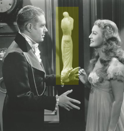 A less likely possibility is Christmas 1940. That theory stems from the sculpture’s appearance in When Ladies Meet, a Joan Crawford–Robert Taylor–Greer Garson film released in August 1941. But it’s doubtful Nelson gave it to Jeanette in 1940. Yes, it was in Nelson’s nature to showcase his feelings for Jeanette through subtly obvious gestures—like placing the sculpture in a film they shared. But neither of them was filming at MGM in late 1940, which further weakens that theory.