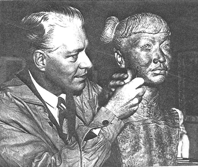 Nelson Eddy and his 1943 lifesize sculpture of actress Anna May Wong, limited edition replicas available at www.maceddy.com
